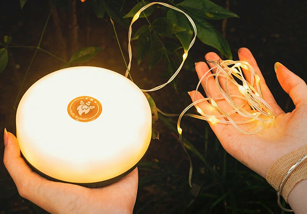 Ліхтар для кемпінгу з гірляндою — це багатофункціональний пристрій, який забезпечує освітлення для наметів, кемпінгів, вечірок або навіть для використання вдома. Захист від води забезпечує безпечне використання навіть у дощову погоду, що робить пристрій незамінним для туристичних подорожей.