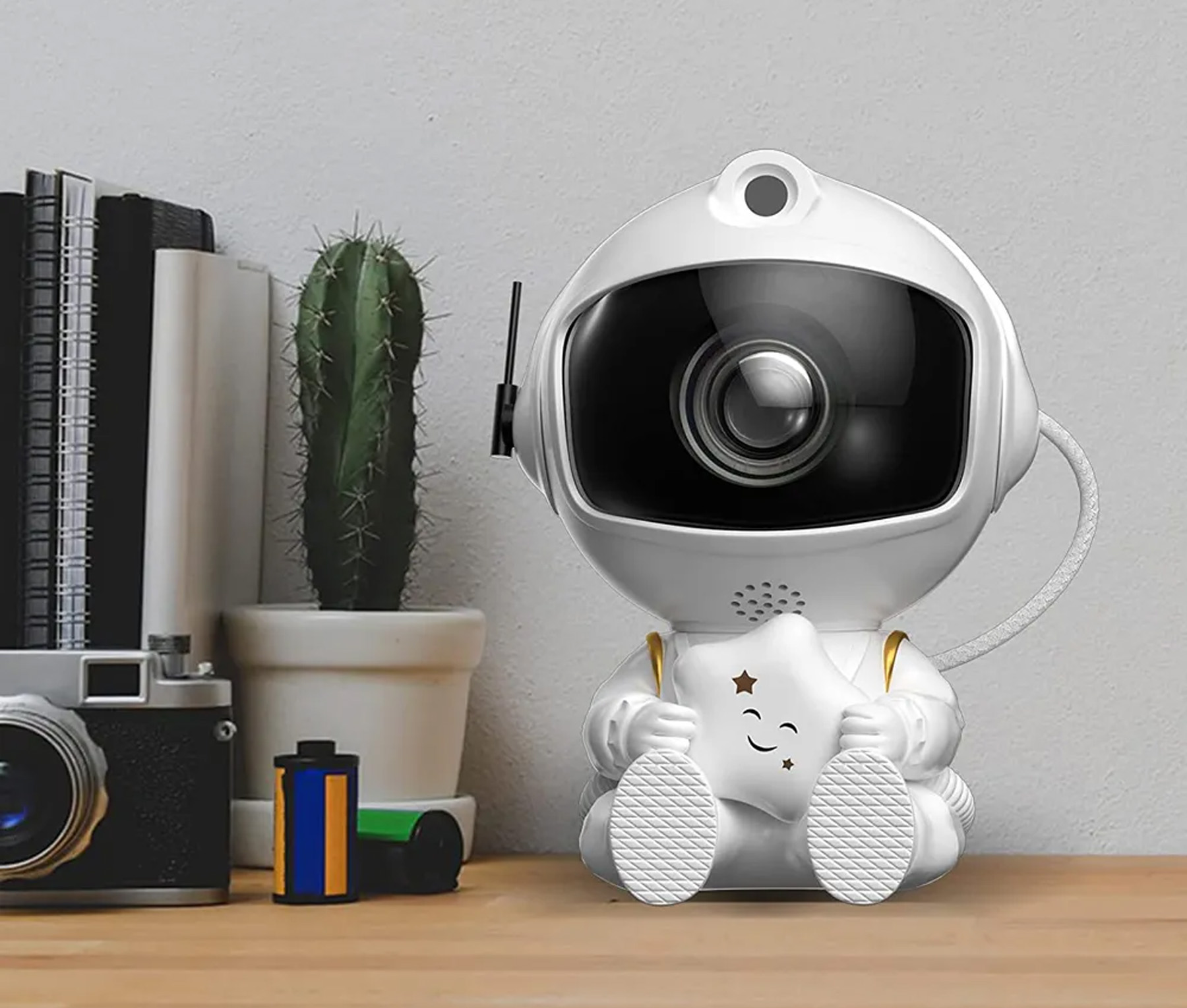 Легкий у використанні пульт дає можливість зручно налаштовувати яскравість, кольори та режими роботи нічника без необхідності вставати з ліжка. Ви можете налаштувати кут проекції, оскільки проектор знаходиться в рухомому шоломі астронавта. Голова космонавта обертається на 360°, з магнітним тяжінням, отже зоряне небо може бути проектовано будь-де без обмежень.