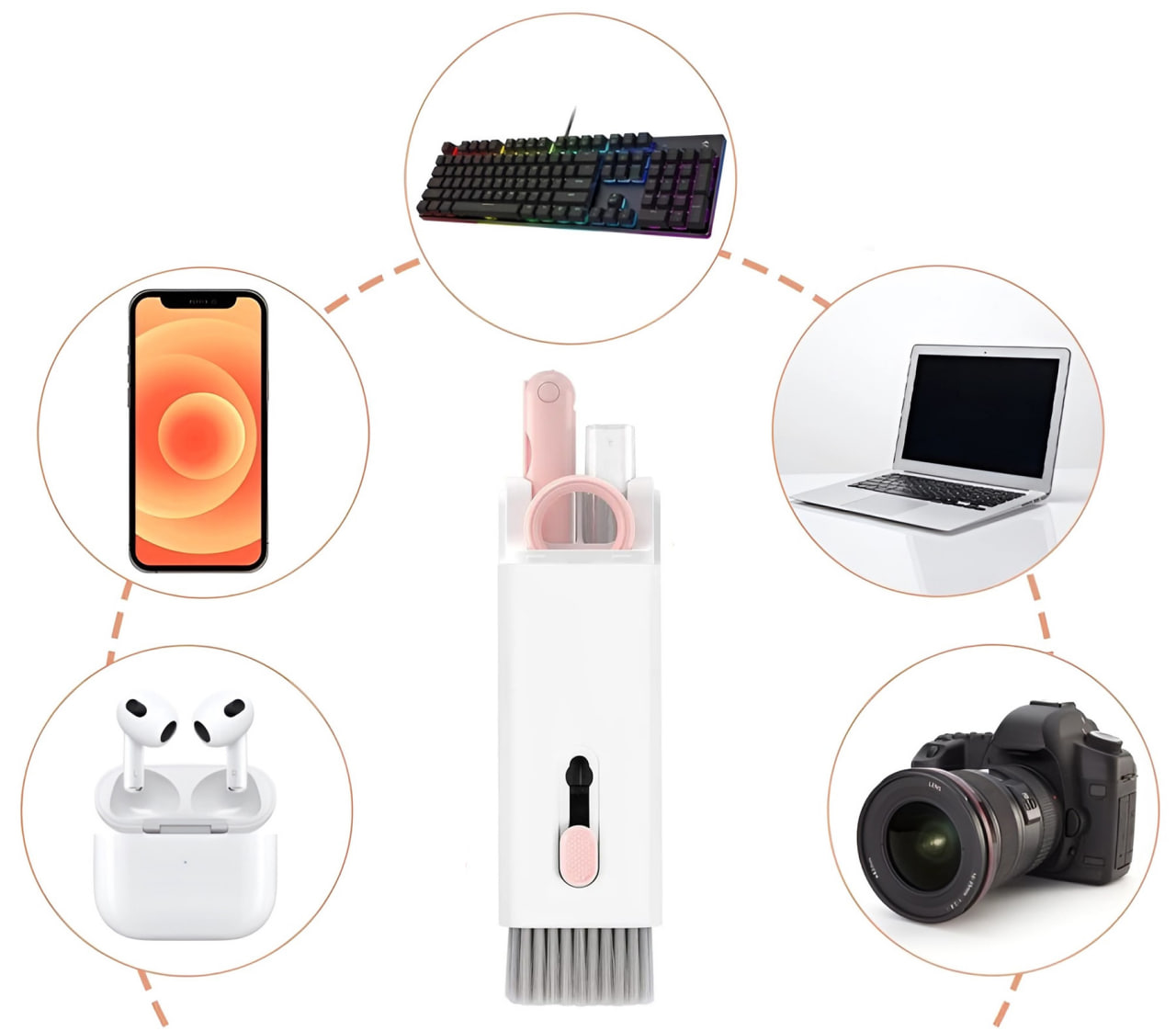 Багатофункціональний набір для чищення клавіатури 7в1 - це незамінний інструмент для догляду за вашими гаджетами, який включає в себе все необхідне для ефективного та безпечного очищення. Набір поставляється в компактній упаковці, що робить його зручним для перенесення та зберігання в сумці або кишені. Кожний предмет призначений для певного виду поверхні, забезпечуючи максимальну ефективність.
