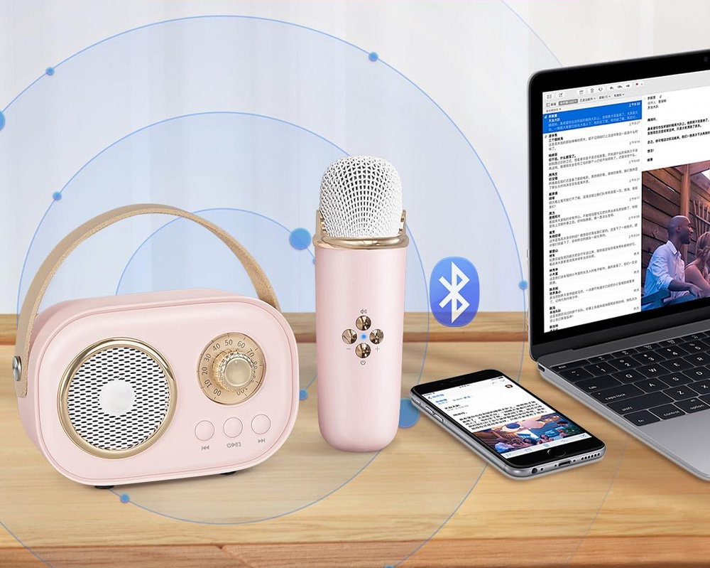 Бездротова Bluetooth колонка для караоке - це портативний пристрій, який дозволяє насолоджуватися музикою і виконувати улюблені пісні в будь-якому місці, навіть без підключення до електричної мережі. Завдяки компактним розмірам та вбудованому акумулятору ця колонка легко переноситься та використовується в подорожах, на пікніках, вечірках або навіть в кафе.