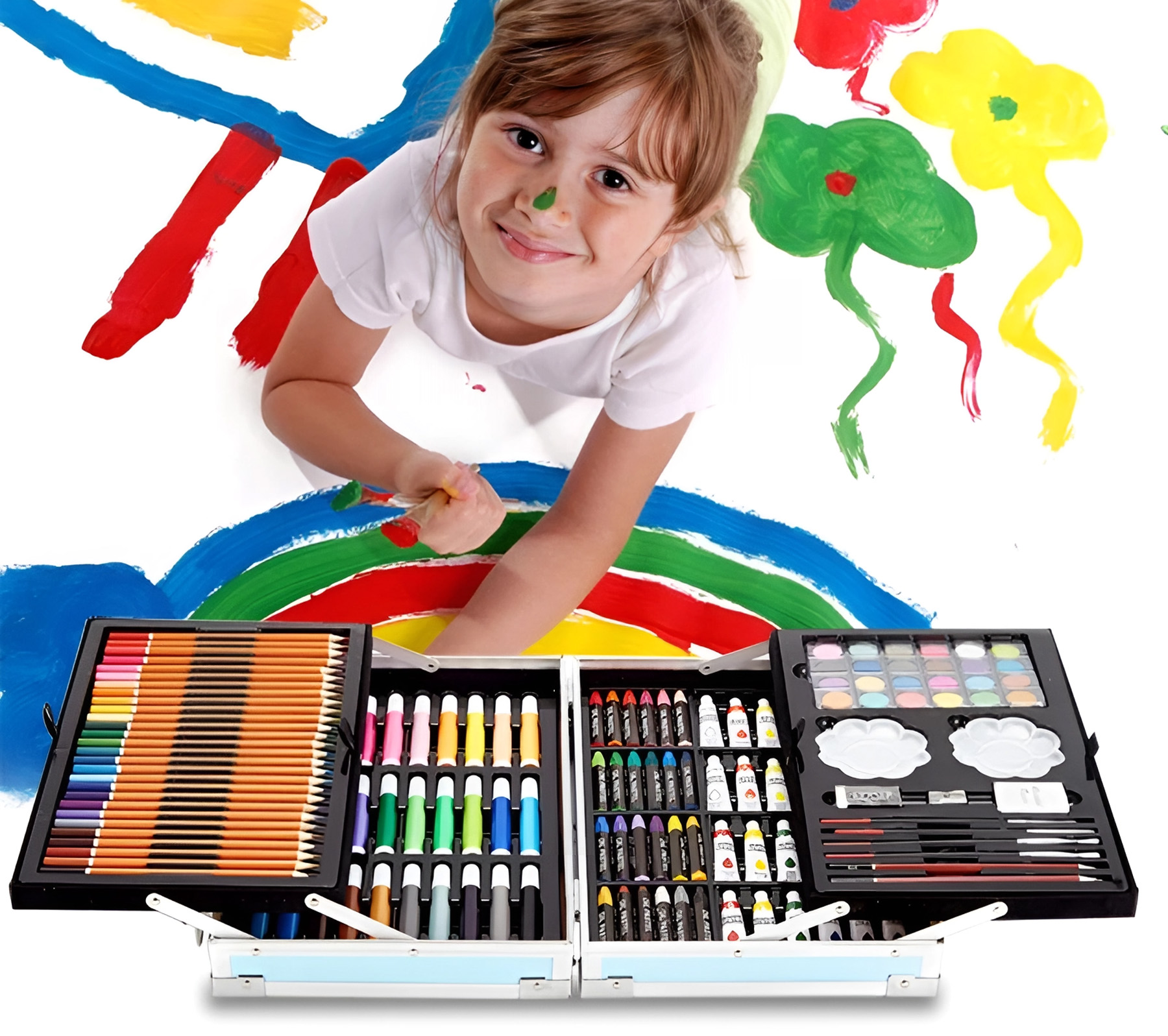 Всі матеріали зберігаються в зручній валізі, що полегшує їх транспортування та зберігання. Це також дозволяє брати набір з собою у подорожі або відвідувати мистецькі заняття. Велика кількість предметів дозволяє дітям виражати свою уяву та створювати малюнки будь-якої складності. Вони можуть експериментувати з різними техніками та матеріалами, що сприяє розвитку їхнього творчого мислення.